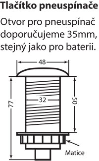 - tlačítko (pístek) pneuspínače, které se umísťuje na dřez nebo na pracovní desku, průměr otvoru 35 mm, průměr vrchu 50mm.